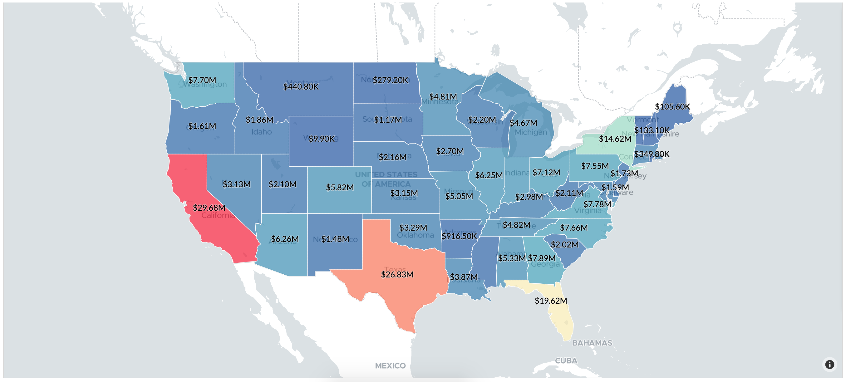 Historic sales data is visually analyzed in the form of a geomap. This can enable you to identify top performing markets and align your operations accordingly. It also gives you a reading on your customers. By further understanding your markets, you can consider tailoring your marketing campaigns with some regional flavor!