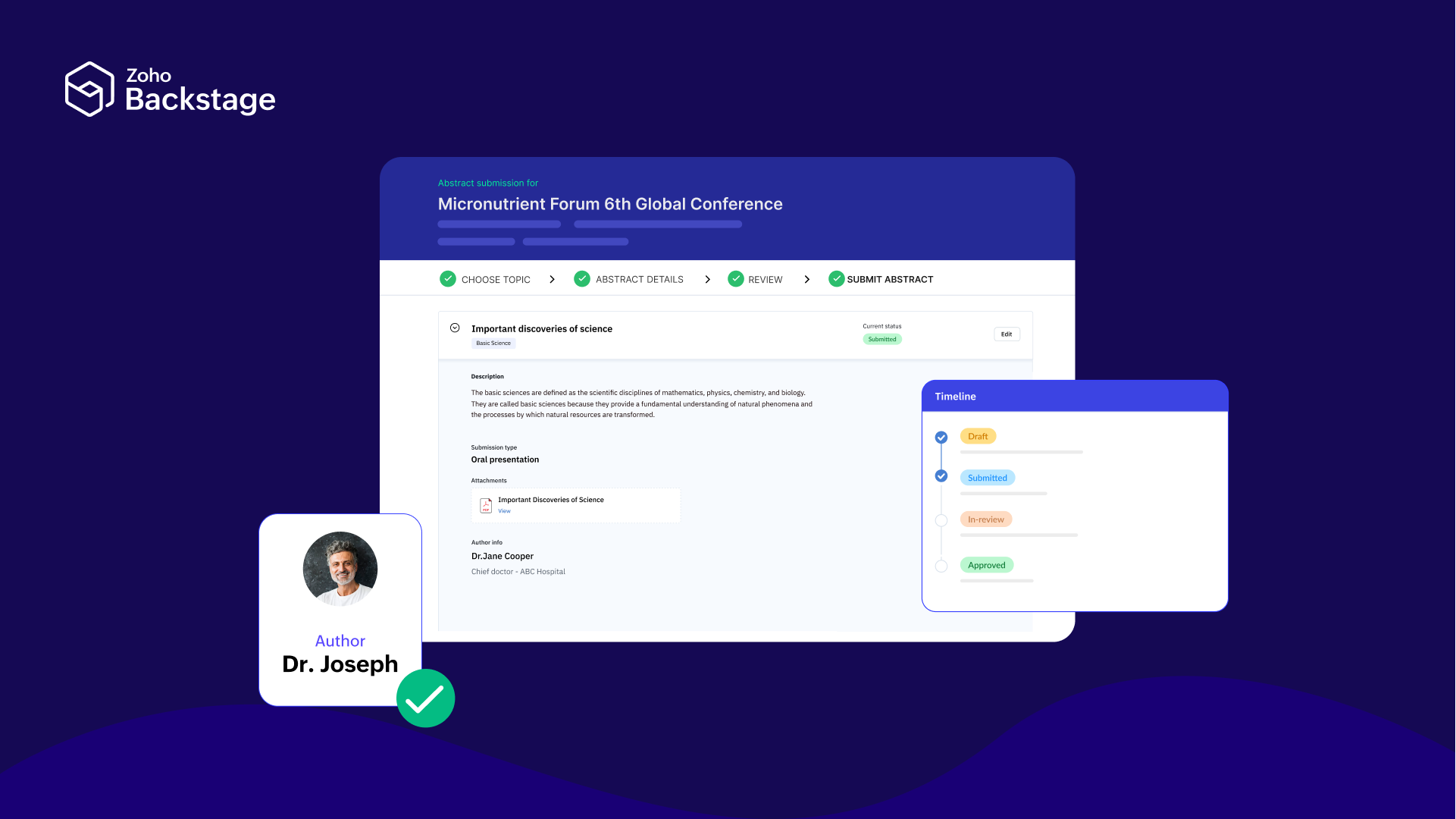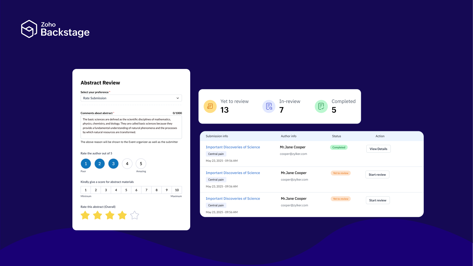 Let’s walk through how Zoho Backstage can help you stay on top of your abstract workflow.