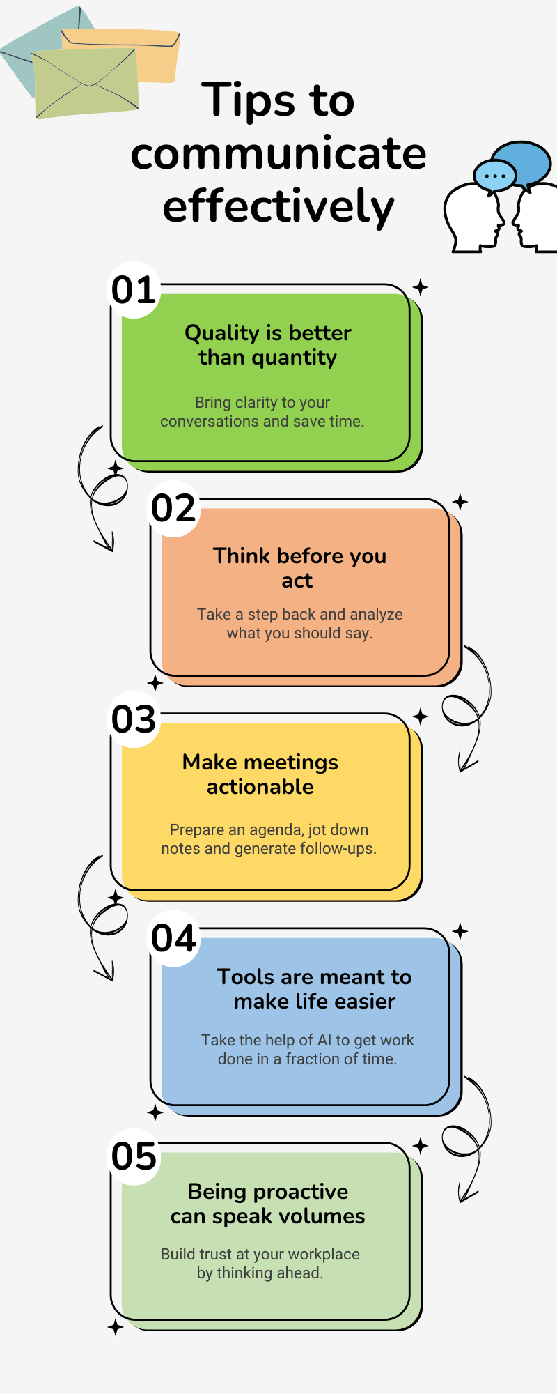 Simple steps create big ripples if done the right way. Take the responsibility of making conscious changes to communication at your workplace and see it make all the difference in the way your team works together.