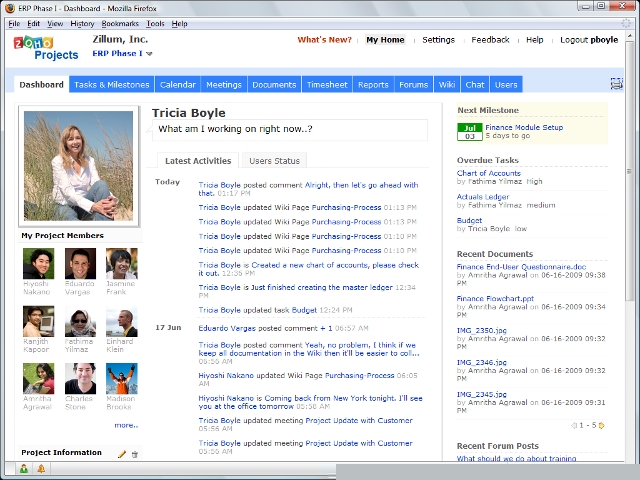 2. The Project Stream and the Twitter-like status updates gives you a quick update on everything happening in the project. With Agile, milestones and task due dates are not set in stone - they are always changing. Zoho Projects helps you keep your team appraised as there are changes in the schedules and plans.