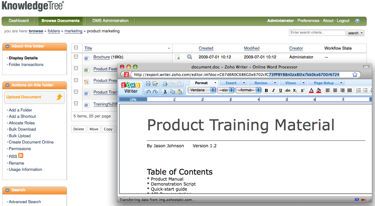 We'd like to thank KnowledgeTree for integrating Zoho and looking forward to a long-term relationship.