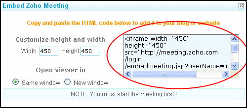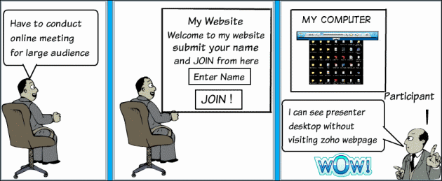 We have embedded and started Zoho Meeting in a webpage of ours. You can join the online meeting and see real time desktop sharing.