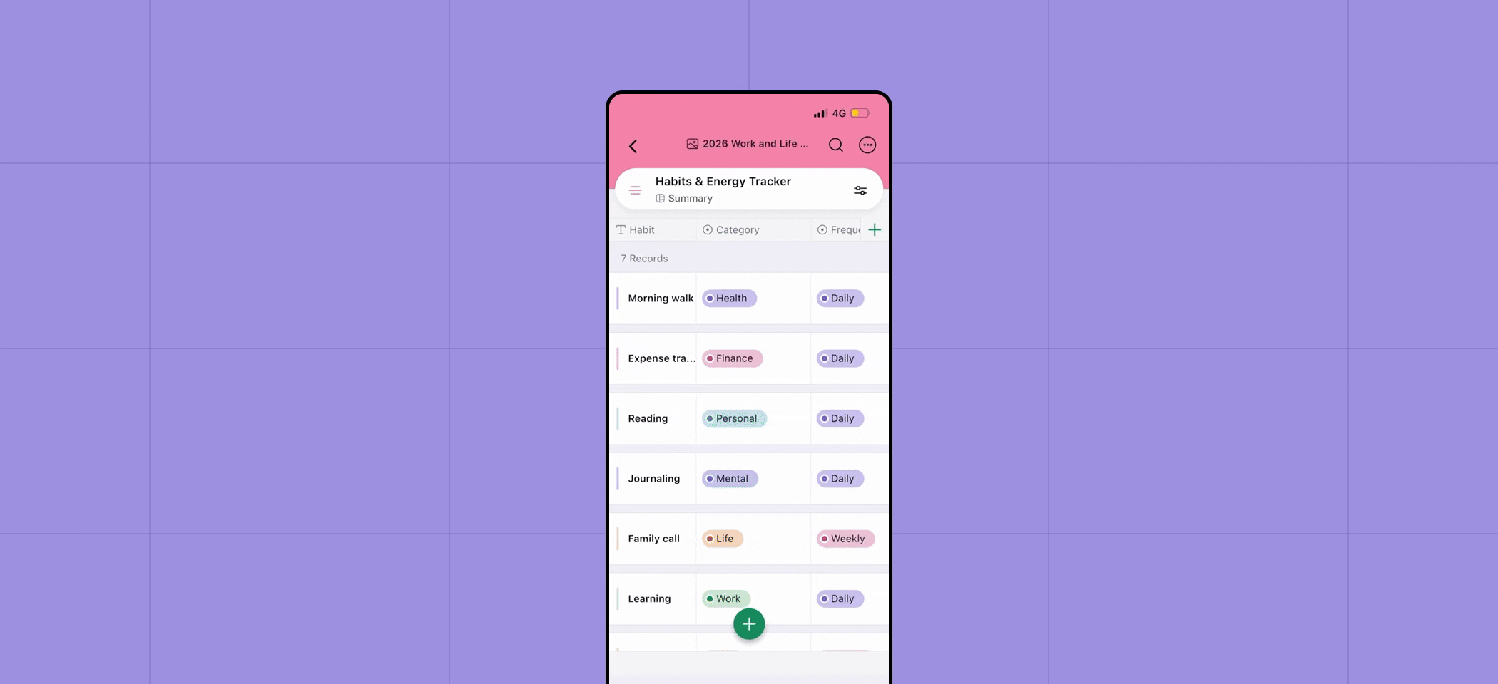 Add records the moment life happens, log expenses right after a purchase, update habits post-workout, or save a travel idea mid-scroll even when you are on the go.