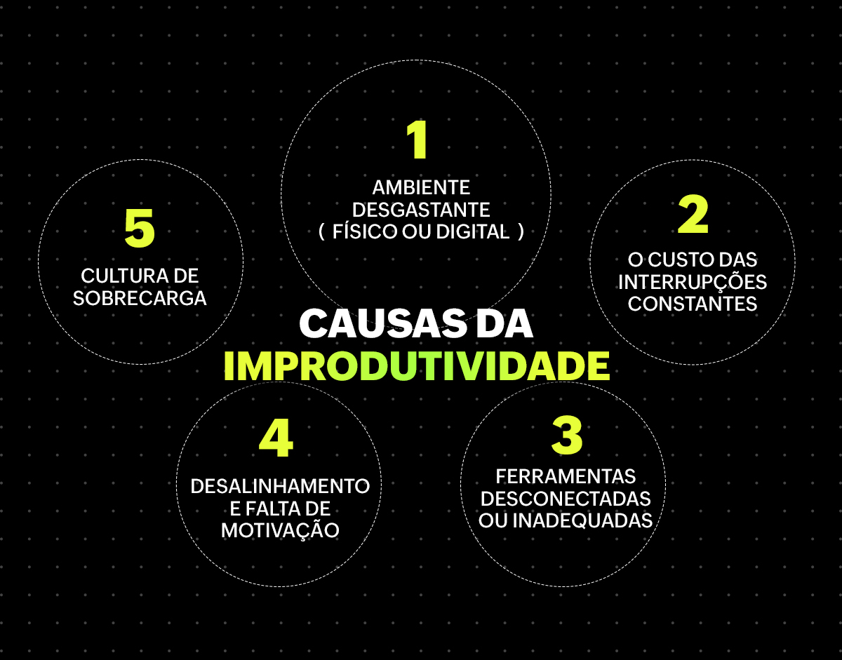 Mas, afinal, o que pode estar causando a improdutividade diária? Existem várias causas possíveis. Confira: