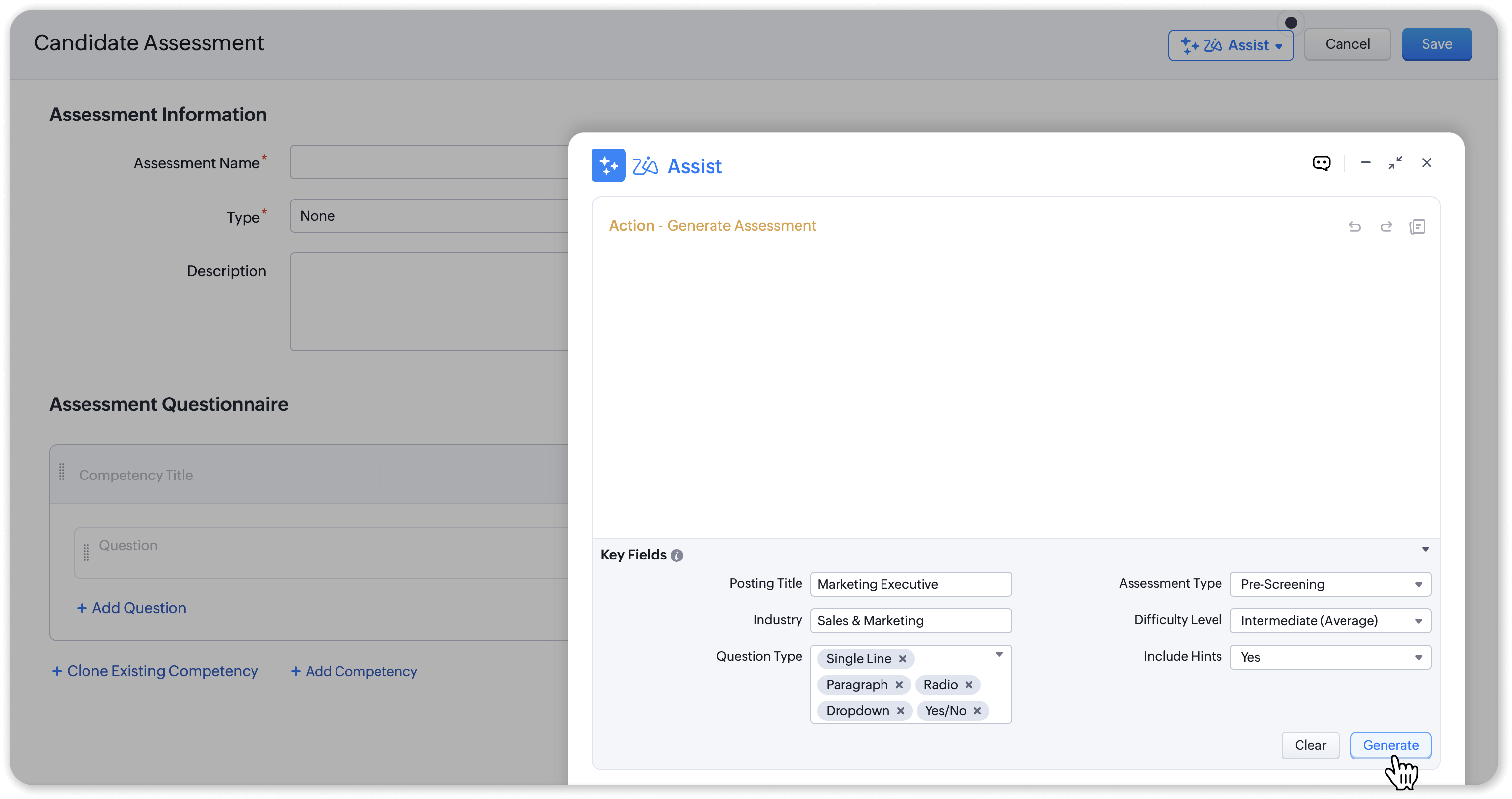 Reset how you evaluate skills, with AI-powered assessment generation built right inside Zoho Recruit. Try AI assessments.