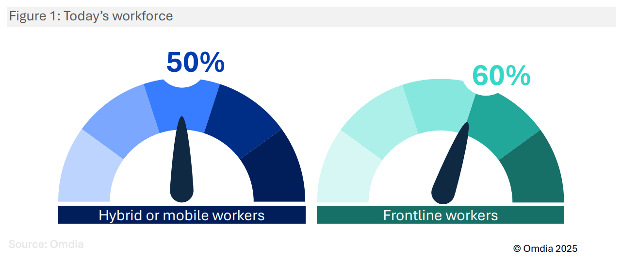 Over the past decade, workplace reality has fundamentally shifted. Omdia research shows that 50% of the typical workforce now operates in hybrid or mobile environments, despite many organizations deploying “return to office” mandates for most of the working week.